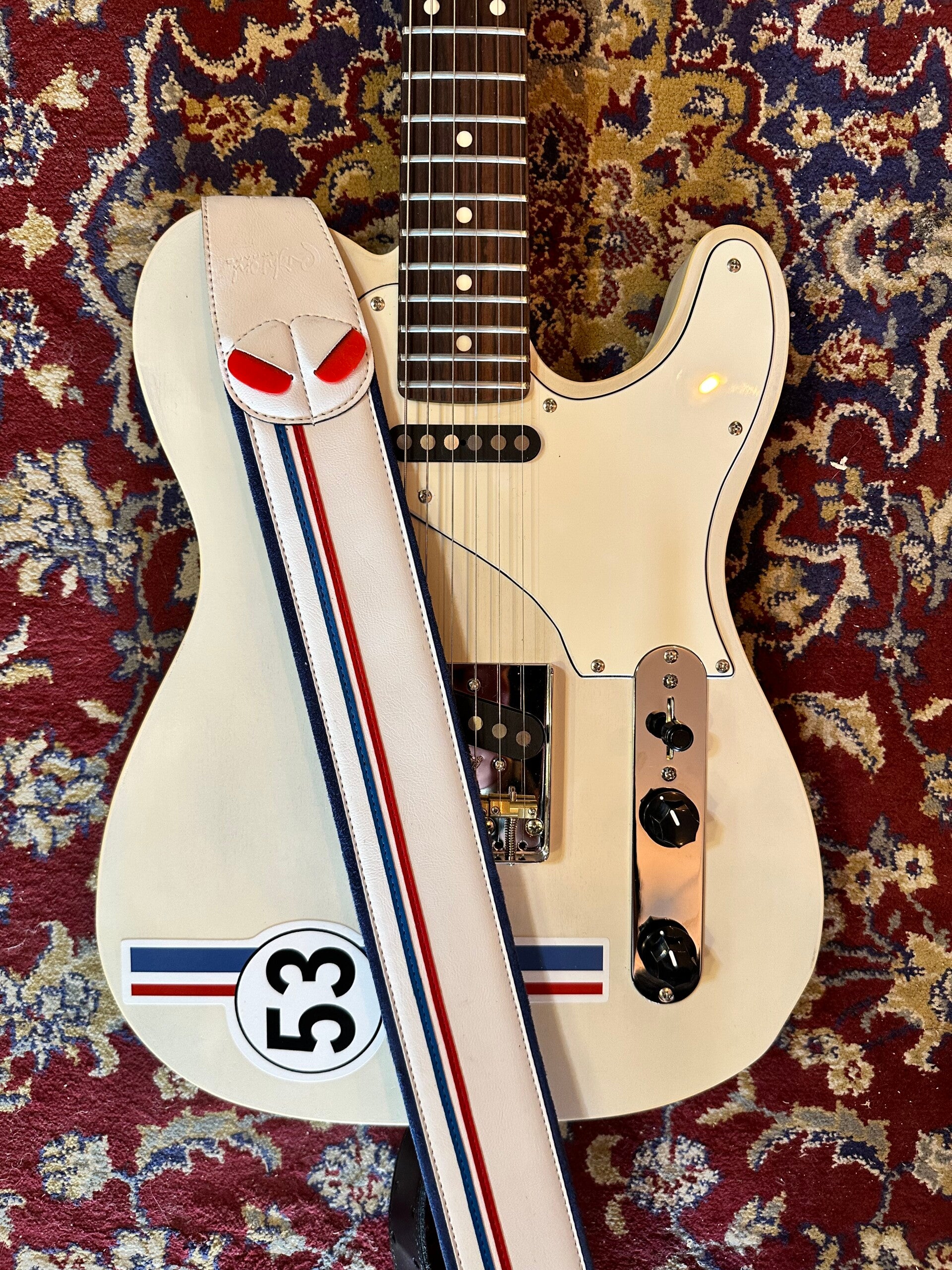 Comes with matching Right On guitar strap, red cable and softcase